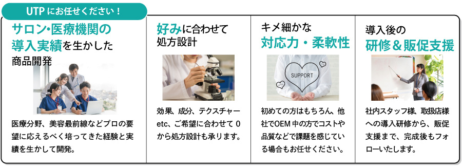 UTPではこれまで数百件以上のOEM化粧品・サプリメント開発に携わってきました。