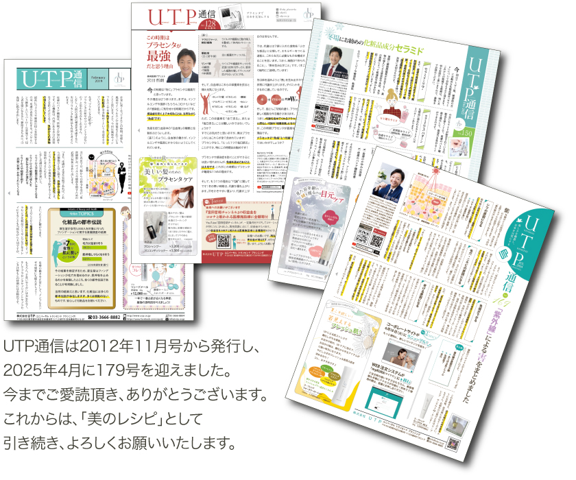 これまで、毎月お届けしてきた「UTP通信」は、取引先の皆さまに、美容や健康に関する知識を深めて頂くことを目的としてまいりました。
